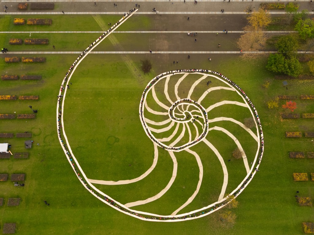 Aber viel spannender als die Theorie finde ich in diesem Fall die Erfahrung: Was macht es mit uns, wenn wir diese Spirale aus Menschen sehen? Was macht es mit uns, wenn wir Teil einer solchen Spirale werden? Wenn wir uns als Teil des Ganzen und als verbunden erfahren, ist das eines der besten Mittel gegen Einsamkeit, Angst und Aggression. Selten habe ich mich so im Moment und so zufrieden gefühlt wie in den Tagen vor, nach und während der Kunstaktion. Ich glaube, dass es nicht nur mir so ging. Dieses Erleben ist stark und es hält eine Weile an. Wie viel stärker wäre, es, wenn wir alle öfter solche Verbundenheits-Erfahrungen machen würden?