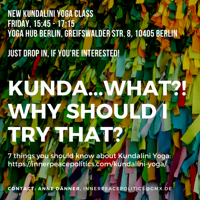 Ab dem 6. März unterrichte ich einen Kundalini Yoga-Kurs im Yoga Hub Berlin, einem Treffpunkt für Menschen mit unterschiedlichen Muttersprachen – und natürlich für unterschiedliche Yoga-Stile. Der Kurs ist auf Deutsch, bei Bedarf mit Erläuterungen auf Englisch.