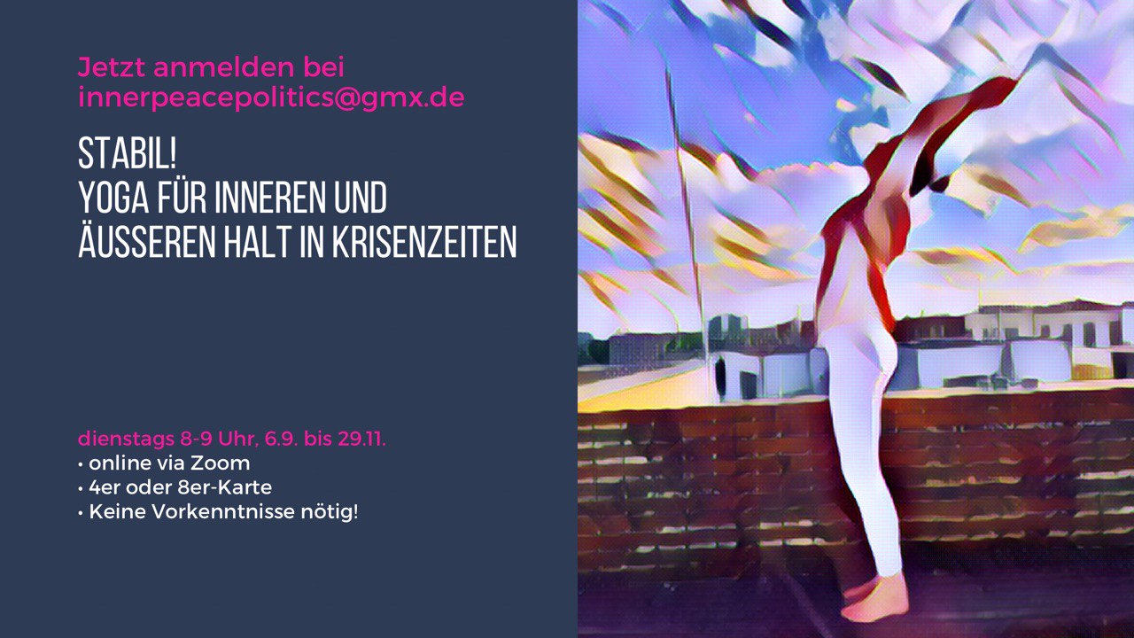 Einfach per Mail an innerpeacepolitics@gmx.de mit dem Betreff „Stabil!“ – Du erhältst dann eine Anmeldebestätigung und den Zoom-Link.