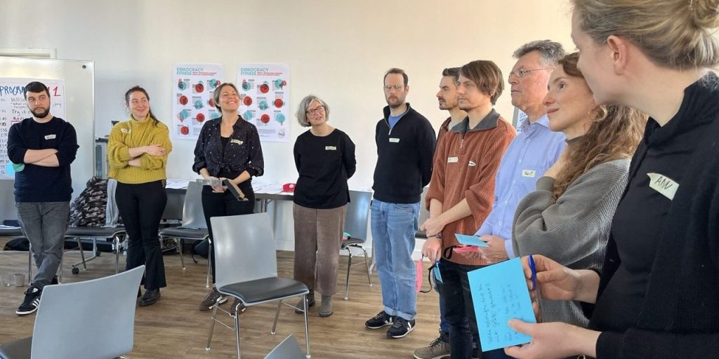 1. Passende Strukturen: Das können zum Beispiel Parlamente sein…geloste Bürgerräte…direktdemokratische Abstimmungen…Versammlungen, die sich je nach Anlass und Thema anders zusammensetzen und andere Funktionsweisen haben… Damit die Strukturen funktionieren braucht es in de Regel geeignete Räume, genügend Zeit – und auch Geld. Und es braucht gute Raumhalter:innen, also Personen, die die Strukturen erhalten, entwickeln, anderen darin Orientierung geben.