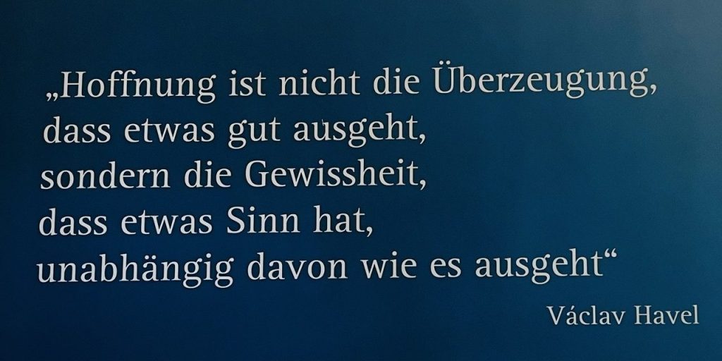 Noch länger als die Demokratiearbeit begleitet mich ein Ausspruch von Václav Havel. Mir kommt er schon fast banal vor, aber da er in den letzten Monaten immer wieder Menschen berührt hat, stelle ich ihn ans Ende dieses Beitrags: